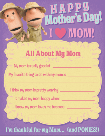 My friends at What’s In The Bible were kind enough to allow me to share this with all of you. This is a great idea for those of you with little ones in the house that want to express their love for Mom this Mother’s Day. This is a downloadable card that the kids can fill in with all of their favorite things about Mom. Best part is that it’s FREE! Click HERE to download the free printable.