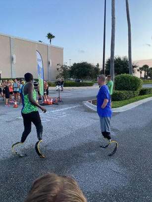 Prior to the start, the race organizers recognized Gary and all of those that were there to support him on this incredible day. One thing that Gary and his dad beamed about was the incredible team at Prosthetics and Orthotic Associates in Florida. This facility and their staff are a community. Their unique setup creates a culture where all of the recovering athletes and patients can meet to bond as they get back to achieving their goals. One athlete that has connected with Gary is Marko Cheseto. He is a double amputee and world record holder. I want you all to meet him too.