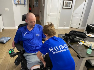 What a remarkable young man. You just had to be there to hear the care and love this child placed on getting his dad ready. Simply remarkable. One of my favorite moments of the morning was when Gary said “Alexa, play Say I Won’t by Mercyme. All Speakers. Volume 10!” We all got pumped up just before heading out of the house.