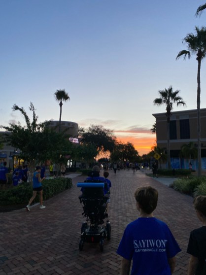 We arrived at the race site and immediately were met with so many people that were there just for Gary. Strangers and friends came up to tell him their story and that they were there because of him. Photos were taken, race bibs were applied and before you knew it, they announced the start of the race. We made our way to the start line just in time for the National Anthem and a sunrise only Florida could provide.