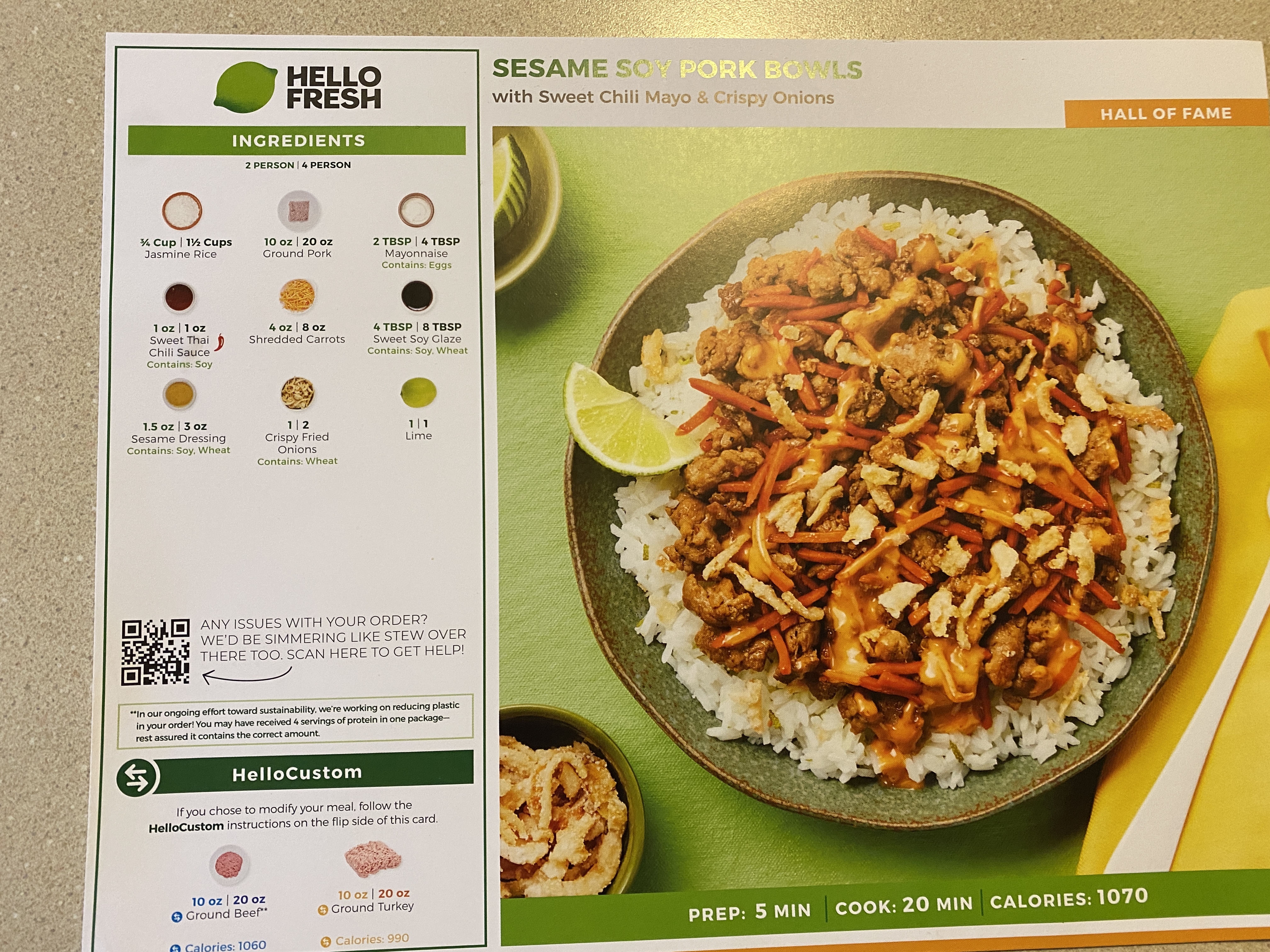 For our first box, I ordered 2 portions for for 5 meals. My thought was that it would be less leftovers and we could have some flexibility for the 7 days between. The package arrived and I was immediately impressed. Hello Fresh have thought of everything. The packaging has all of the instructions you need and the items that arrived were kept cold.