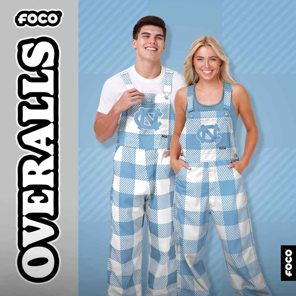 There’s a new way to head to the Tar Heels sporting events and show off your love for the Heels, with the brand-new North Carolina Tar Heels Mens and Womens Plaid Bib Overalls from FOCO. Why blend in when you can stand out, and these overalls are the perfect way to do so. The officially licensed NCAA team overalls are available in both Men’s and Women’s styles and sizes with different team-thematic styles for select NCAA teams. The North Carolina Tar Heels Mens and Womens Plaid Bib Overalls come in white & blue plaid design to match to bring a different and cooler feel to the infamous Tar Heel Blue colors.
